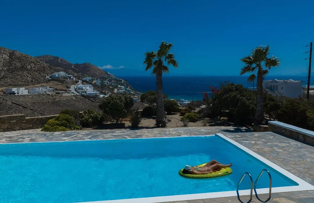 Villa est à 15 minutes de trajet en voiture de l'aéroport de l'île de Mykonos. Le bâtiment offre une retraite avec une piscine. Les services de location des voitures facilitent l'exploration des environs.